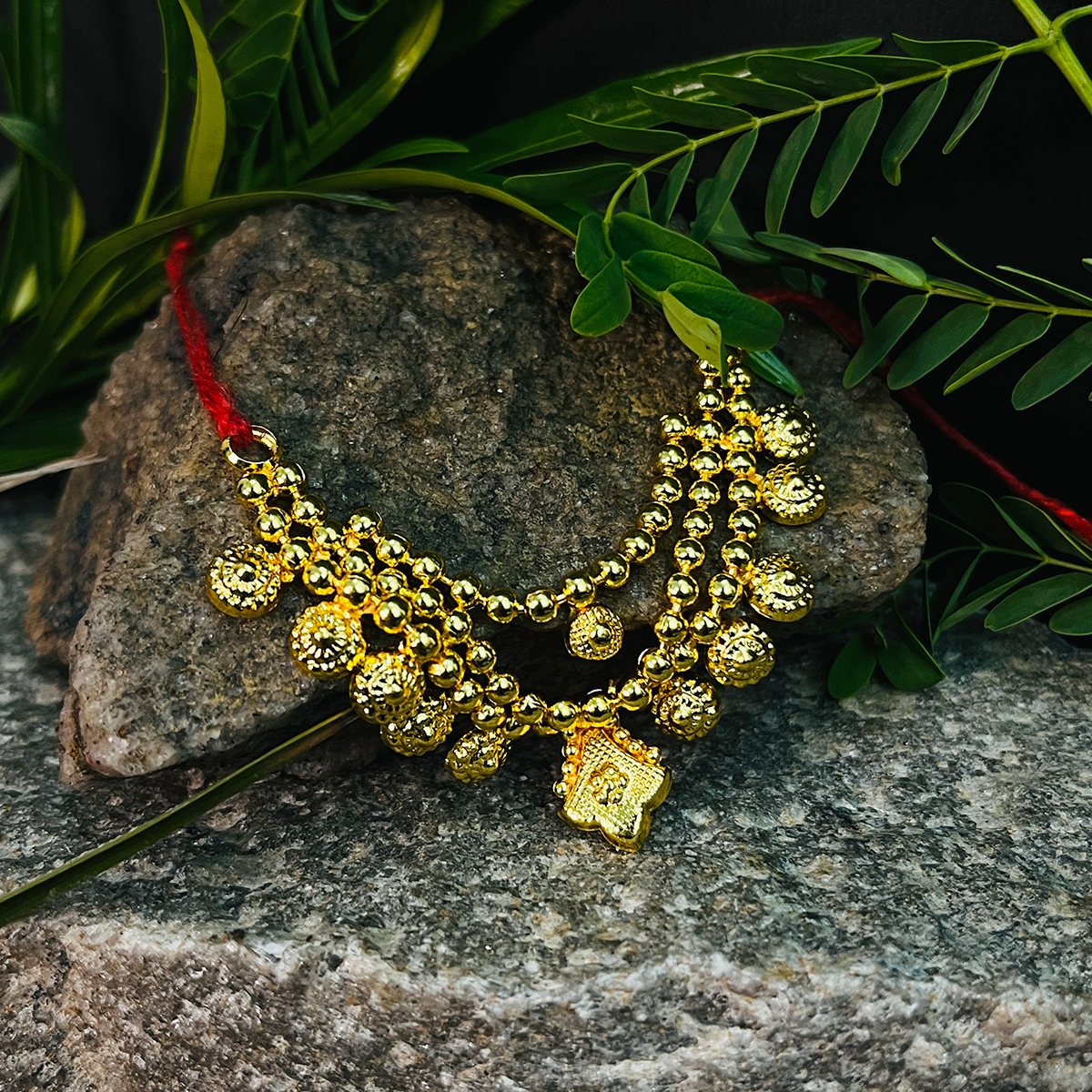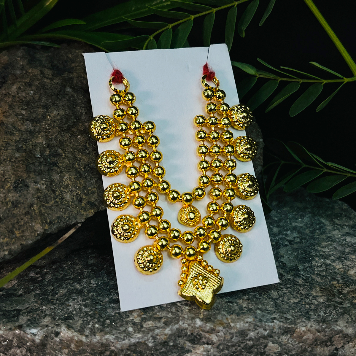 Adorn your deity with this elegant gold-plated haar, designed to enhance the spiritual ambiance of your pooja space. Crafted with intricate golden beads and traditional motifs, this haar is a perfect offering for temple and home worship.