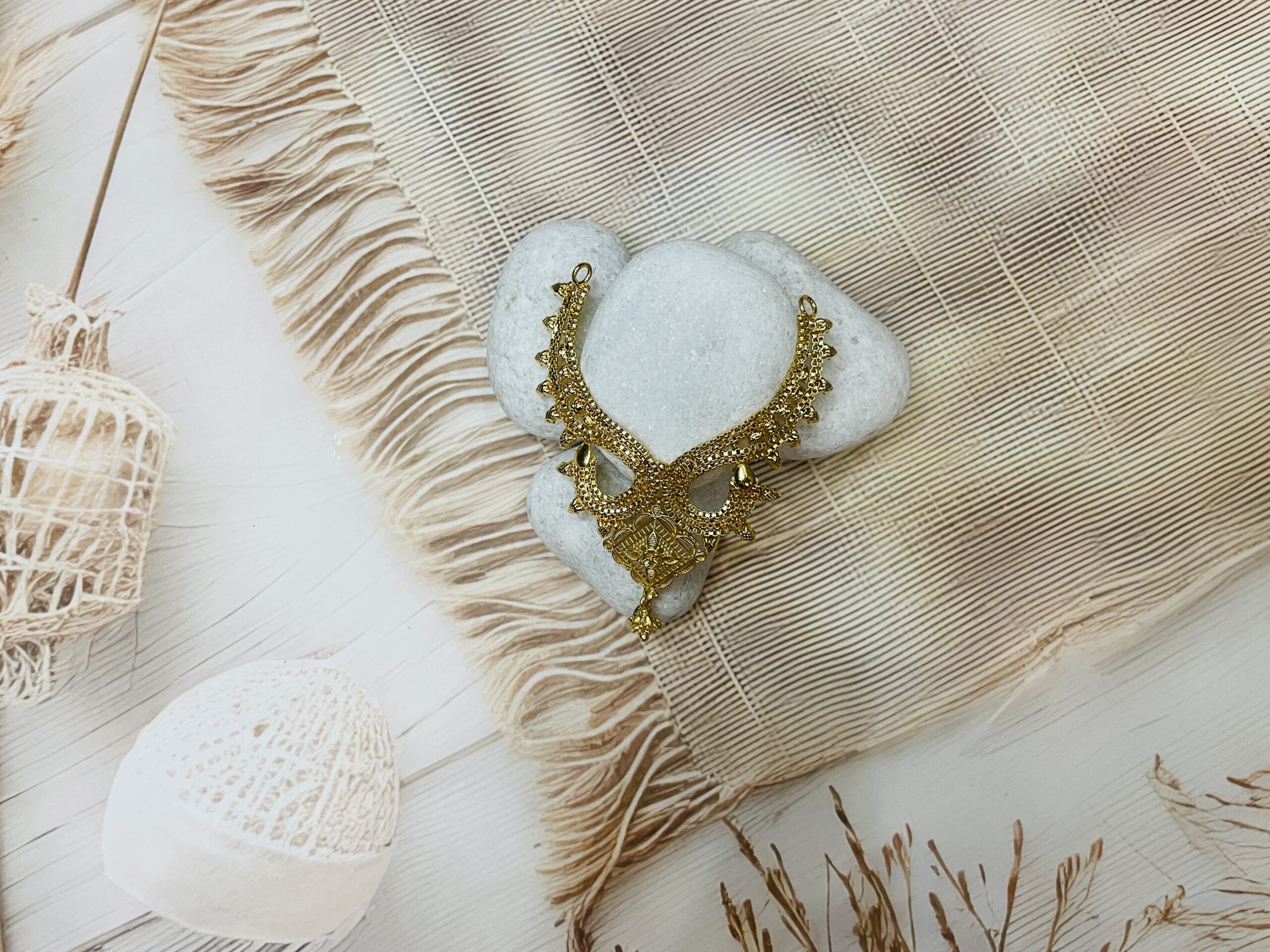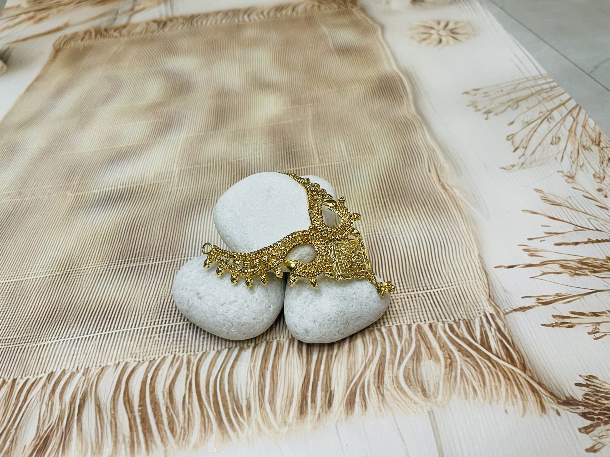 Grace your beloved Thakurji with this exquisitely crafted golden necklace, symbolizing divine royalty and eternal devotion. Designed in traditional temple style, this necklace features fine carving and intricate details that radiate elegance and sanctity.