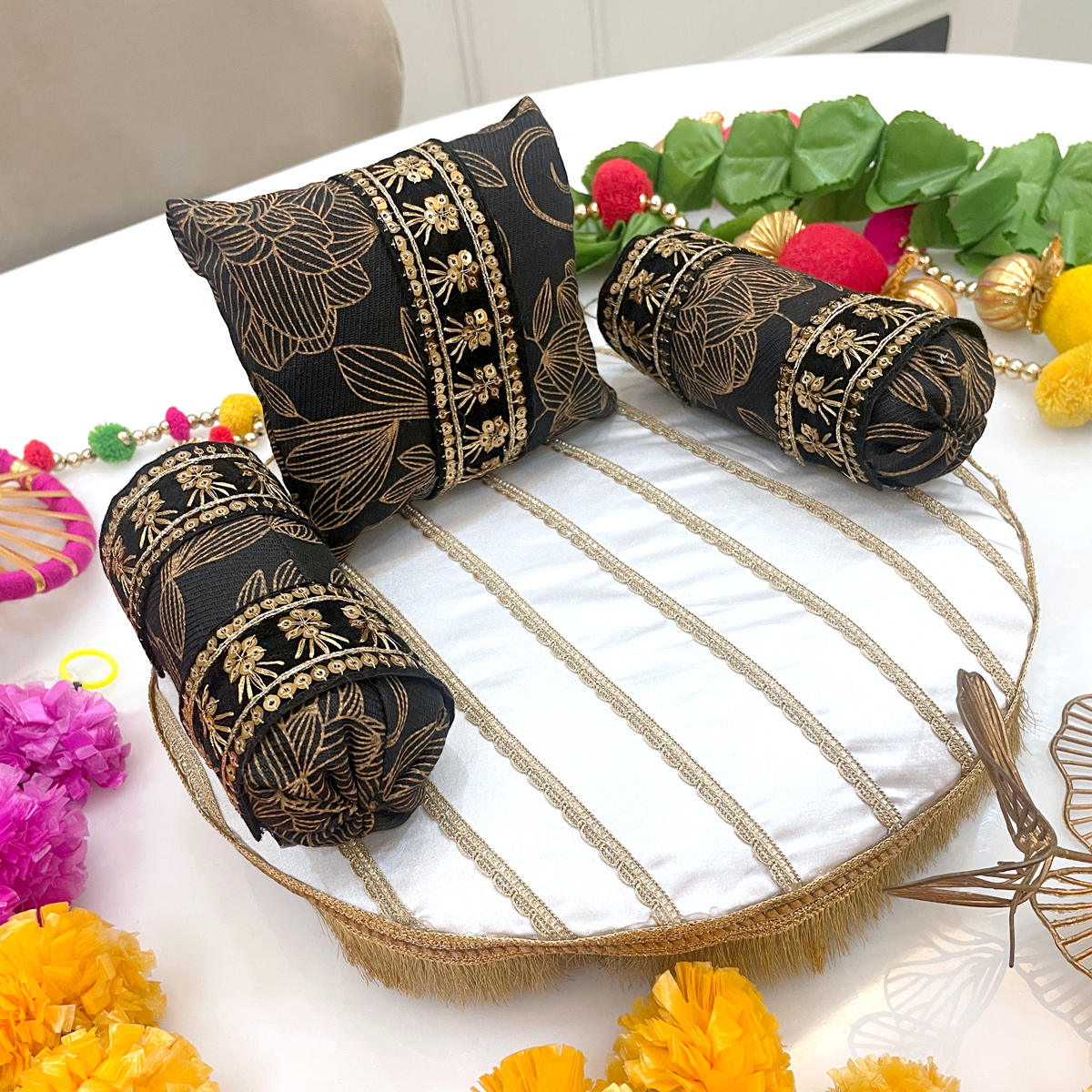 Enhance the beauty of your home mandir with this exquisitely handcrafted Idol Asan cum Bed. Designed with a perfect blend of traditional elegance and modern luxury, this piece serves as a majestic throne (Sinhasan) by day and a comfortable resting place (Sej) for your deity by night.