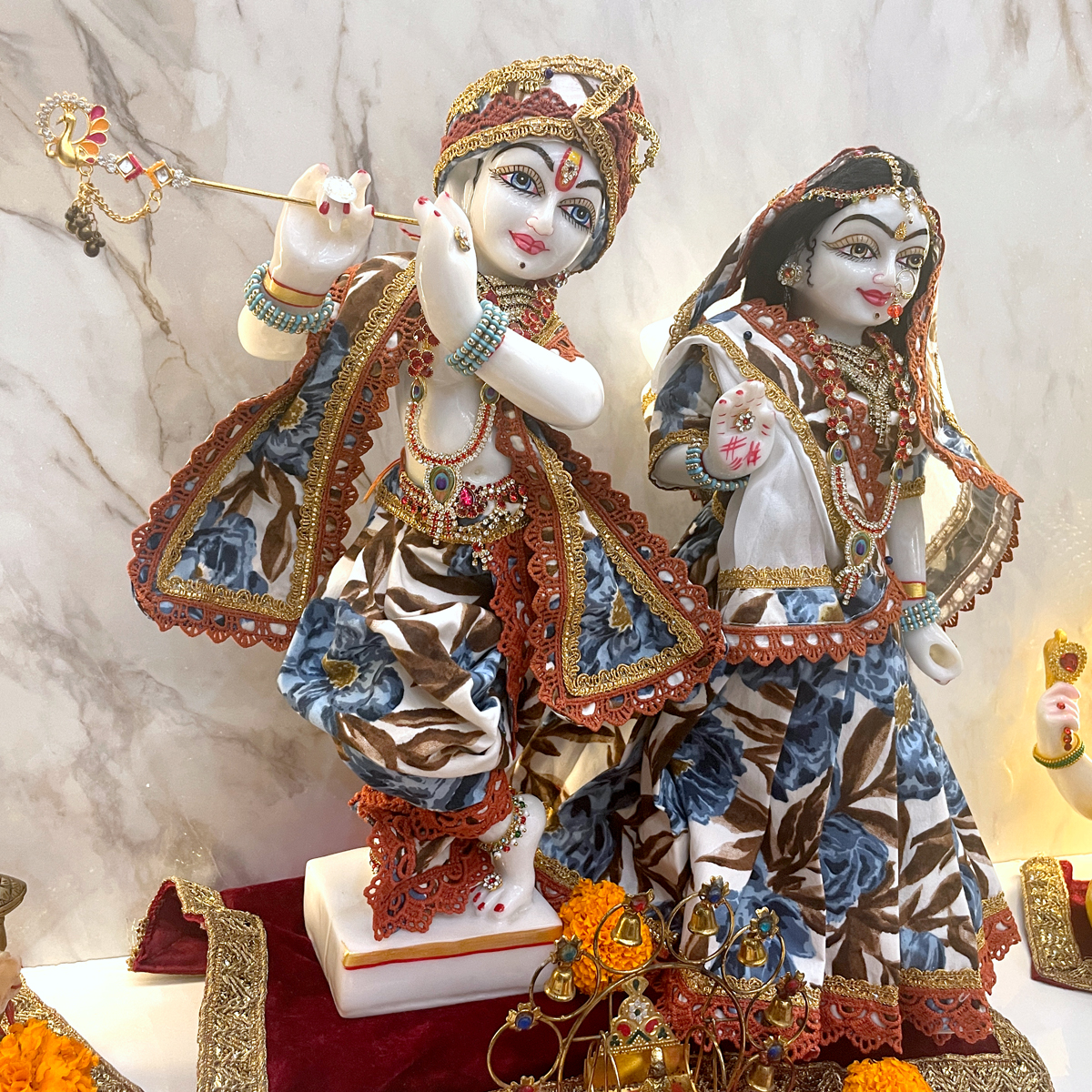 A light, nature-inspired look that’s perfect for serene shringar and peaceful darshan.
